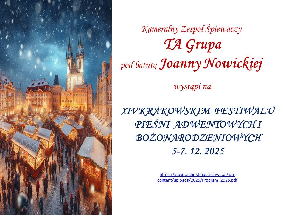 Wystąpimy na XIV KRAKOWSKIM FESTIWALU PIEŚNI ADWENTOWYCH I BOŻONARODZENIOWYCH